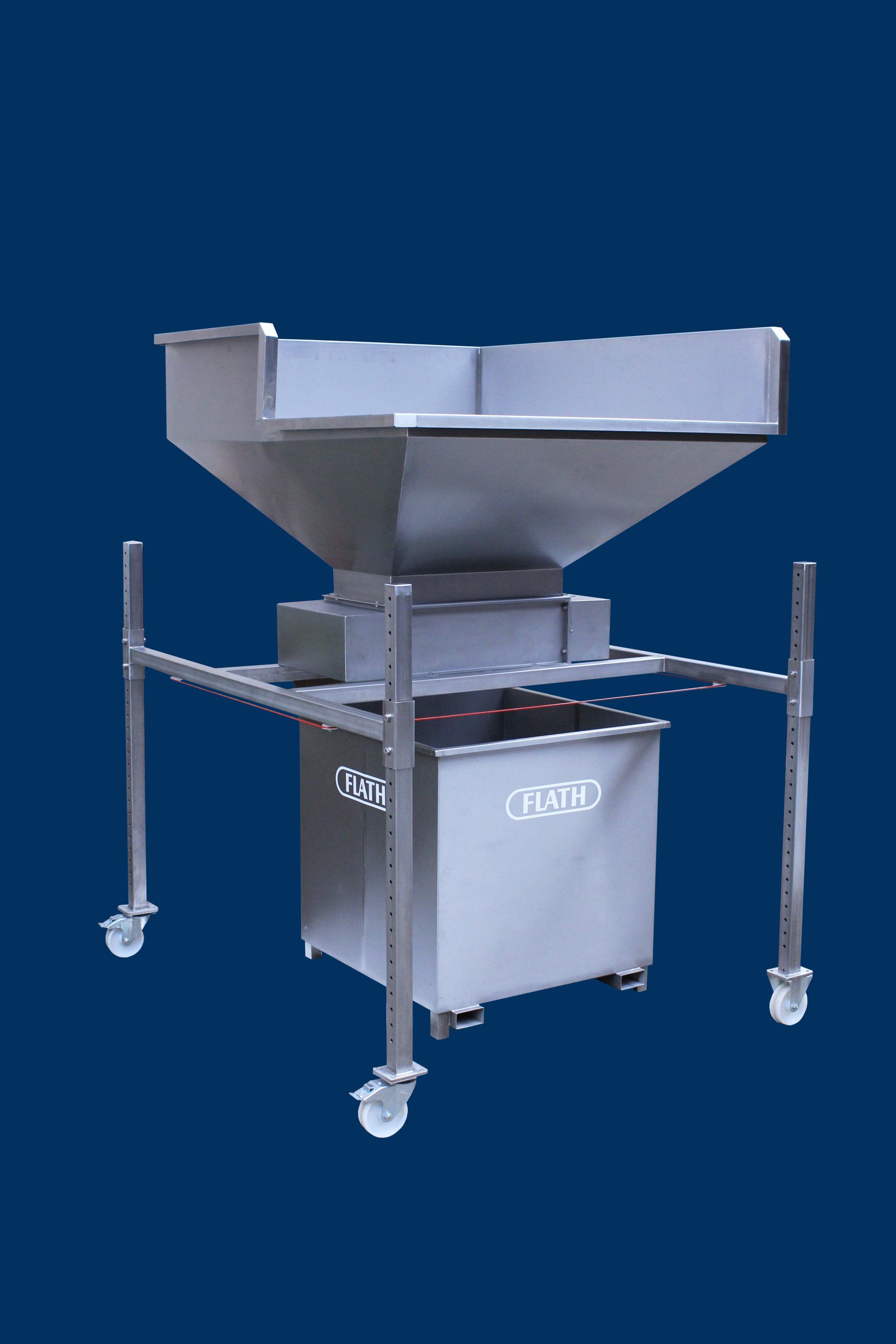 The Flath hopper is the perfect complement for the work with grape basins. The adapted volume capacity ensures that nothing goes wrong, whether on a press, a destemmer or as a supplement to conveyor belts.